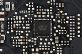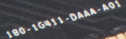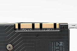 また,電源のフェーズ数がGTX 1080の5+1から4+1へと,GPUの規模に合わせて小さくなり,それに合わせていくつかの部材が省かれている。基板自体は瓜二つにも見えるのだが,よく確認してみると,PCI Express x16スロット近くで確認できる型番らしき表記が異なっていた。GTX 1080の「180-1G413-DAAA-A00」に対してGTX 1070だと「180-1G411-DFAAA-A01」といった具合だ。