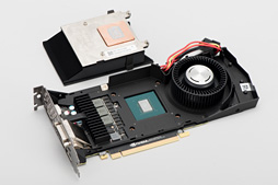一方,GPUの放熱を担うヒートシンクはかなり小ぶりだ。一見するとごく普通のヒートシンクに見えるが,GPUと接する銅のプレートから2本のヒートパイプがヒートシンク全体に熱を運ぶ仕様になっている。