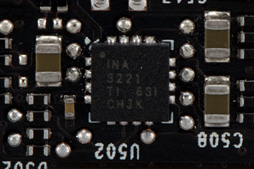 HDMIのトランスミッタやDisplayPort関連のLSIは見当たらないので,GP106側に集積しているのであろう。16nm FinFETプロセスにこれらの機能を詰め込むのはそれなりに大変な気もするが,結果として外付け部品はかなり少なく済んでおり,だからこそ低コストで,かつ小さい基板を実現できているのだと思われる。