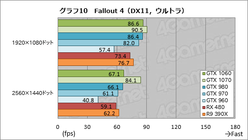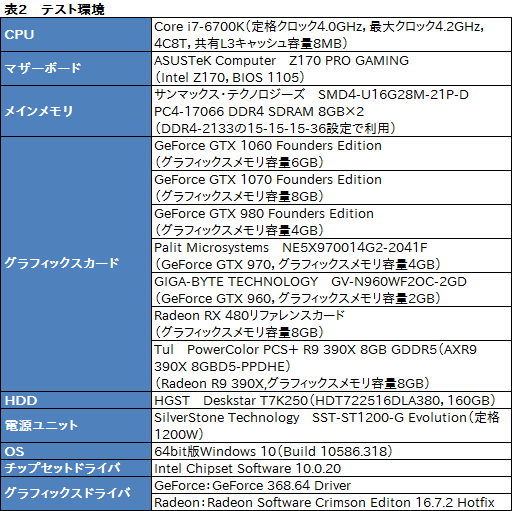 もっとも,より実態に則した評価はおそらく,「トップがGTX 1070,2番手がR9 390X」で,GTX 1060とRX 480,GTX 980は3番手グループを形成している」というものだとは思う。