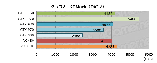NVIDIAの言い分どおり,GTX 980と同等のスコアを示すGTX 1060。GTX 1070とは大差が付く