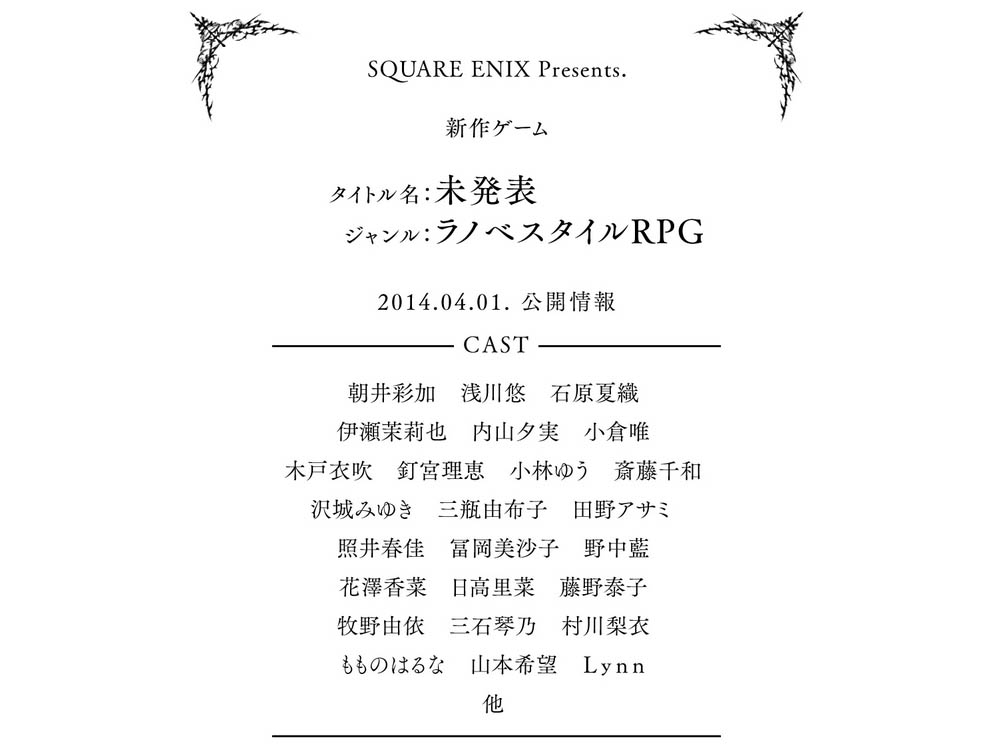 「ラノベスタイルRPG」を謳うスクウェア・エニックスの新作ゲームのティザーサイトがオープン。三石琴乃さん,沢城みゆきさんら豪華キャストを起用