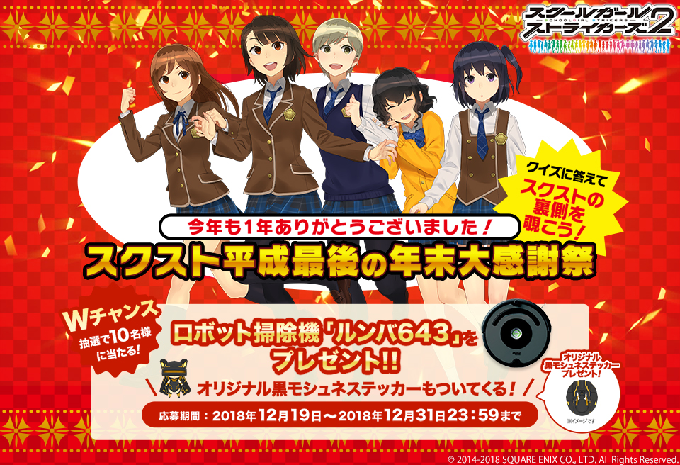 「スクスト2」クイズに答えると「ルンバ」が当たるキャンペーンを実施中