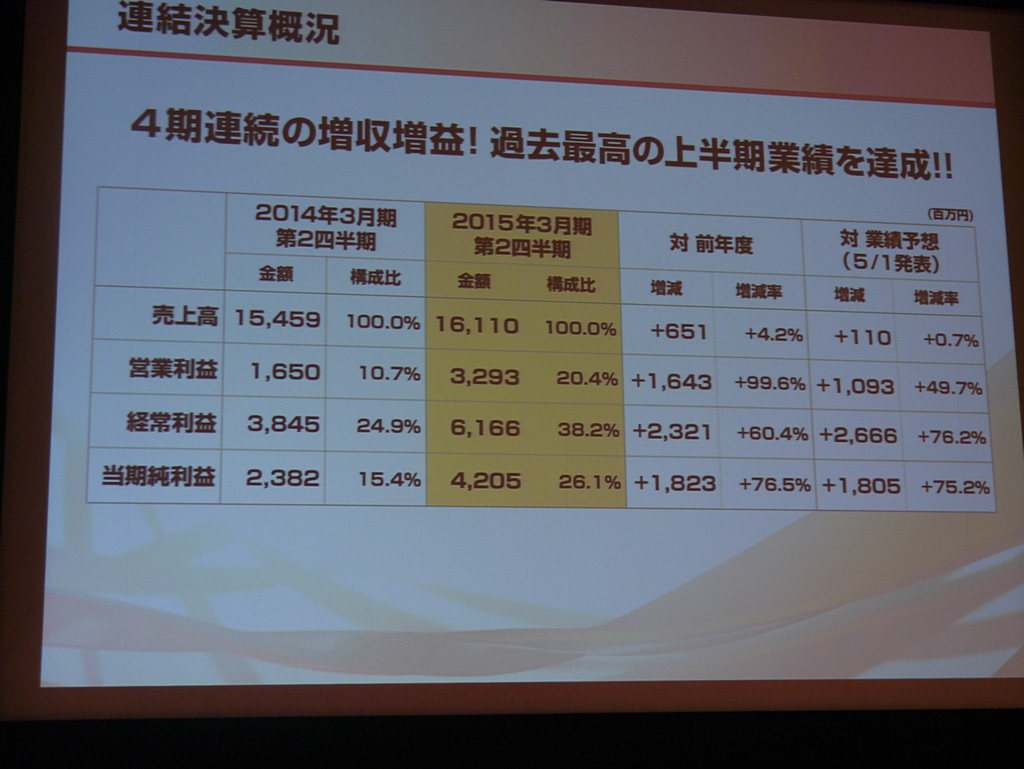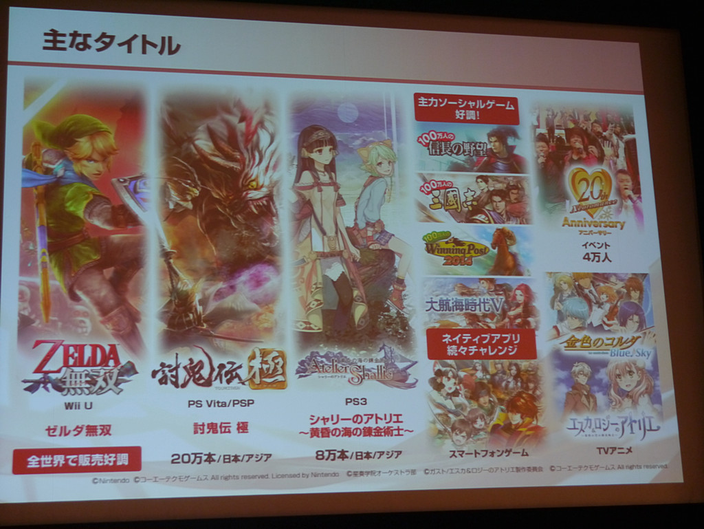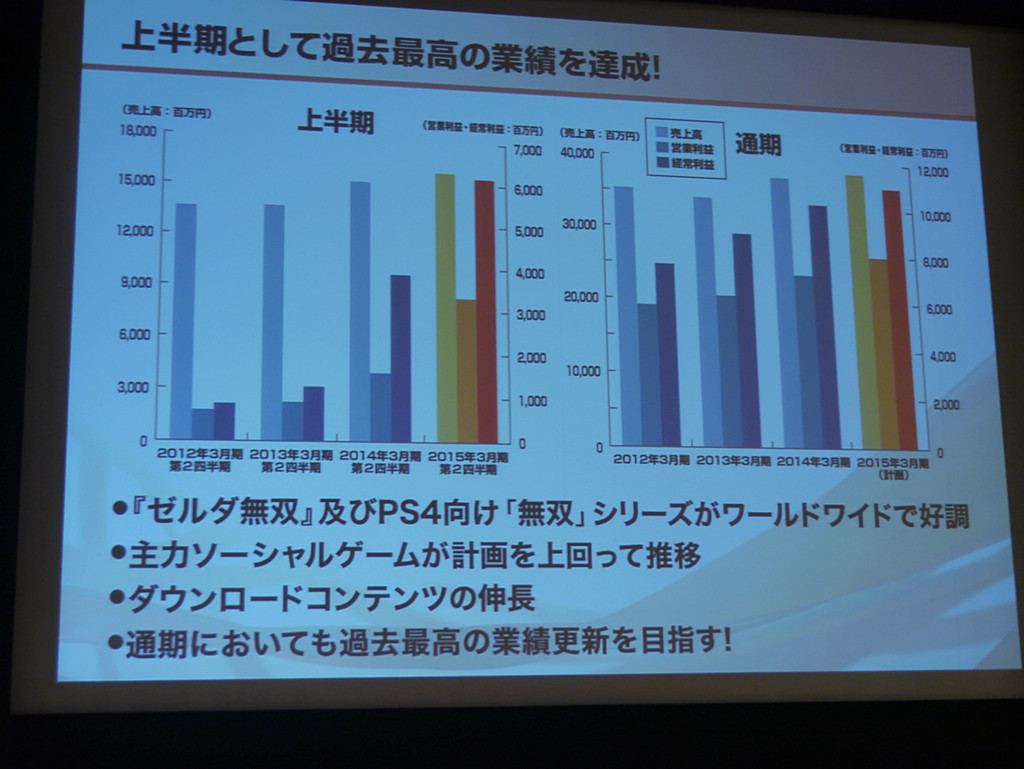 コーエーテクモホールディングスの第2四半期決算説明会が開催。「討鬼伝 極」や「ゼルダ無双」の好調により経営統合以来最高の上半期業績に