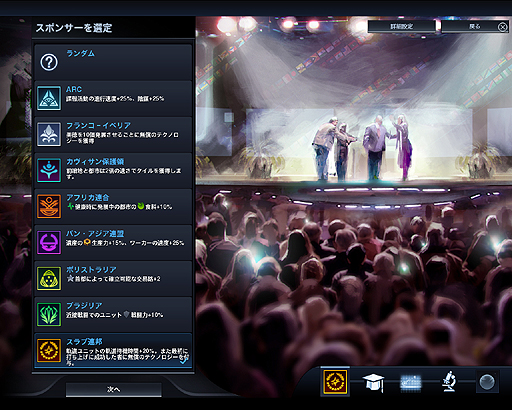 以下,まずは勢力の種類を見てみよう。ゲームではこれらの勢力のいずれかを「スポンサー」として選択することになる。