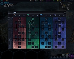 また技術開発には,大項目と小項目(枝)がある。例えば「生態学」という大項目があって,その下に「地質物理学」と「エイリアン生物学」があるという感じだ。上で述べた前提となる技術は,大項目の研究が済んだ段階で,“前提を研究した”とみなされるため,付属する小項目まですべて研究する必要はない。と,文章で書くと複雑に感じるかもしれないが,掲載したスクリーンショットを見れば一目瞭然だろう。