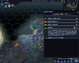 「クエスト」は,荒っぽく分ければ2種類ある。1つは,アフィニティを得たり,勝利条件に近づいたりするためのもので,これらは基本的に指示に従っていれば大丈夫だ。 もう1つは,技術の特化に関するもので,技術を開発した直後,「その技術をどう適用するか?」がクエストの形で提示されることがある。これをクリアすることで,開発した技術をより現状に(あるいは理想の未来に)沿わせた形にカスタマイズできる。