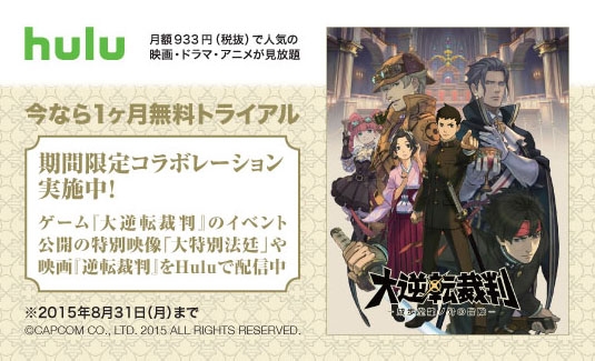 「大逆転裁判」がhuluとコラボ。映画「逆転裁判」や「大特別法廷」を公開