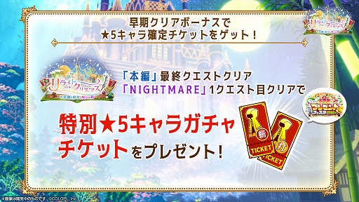 さらに、期間中に「リライト・クリスマス 〜不思議な絵本と呪いの箱〜」の特定のクエストをクリアした方には、斬属性と打属性の★5キャラを1体ずつ仲間に迎えられる「特別★5キャラガチャチケット」を各1枚入手することができるので、イベントクリアをぜひ目指してみてください。