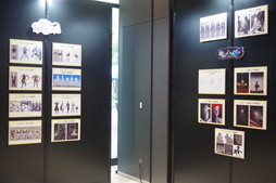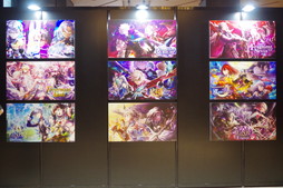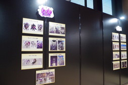 ホール入場口に足を踏み入れると,ゲーム内イベントのキービジュアルがズラリ。さらにキャラクターデザイン案や製作途中のイラストといった各種資料のほか,特大キャラクタースタンド,各キャラクターの描き下ろしイラストパネルなども展示されていた。