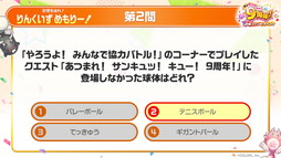 チャレンジの結果,目標は見事に達成され,プレイヤーへのゲーム内プレゼントが配布されることとなった。その後,ミーティングの終盤では,3択や4択クイズに加えて,会場参加者,配信視聴者,出演者が全員で一致団結して「白猫」にまつわる文章を完成させるワードクイズが出題された。