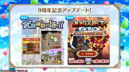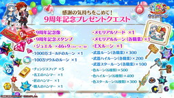 スペシャル生放送の冒頭では,9周年に際して開催されたリツイートキャンペーン,記念ガチャ,ログインキャンペーン,「星4キャラor武器抽選券」の抽選対象追加,日替わりボスラッシュ,毎日スキル覚醒レベル上限解放,抽選権付きの「ジュエルパック」販売,「エクスインゴット武器」に「神進化対象」が実装,といったゲーム内情報が告知された。