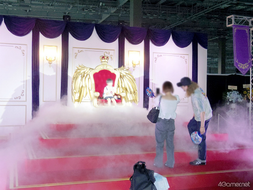 玉座のフォトスポットだ。ライティングによって羽根の影が後ろに映っていたり,スモークが焚かれていたりと神々しさも感じられた。当日はコスプレも可能だったことで,さまざまなキャラクターのコスプレイヤーたちがこのフォトスポットも含め,会場のいたるところで撮影を楽しんでいた。