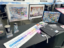 グッズショップ「新装開テン! しろねこマルシェ」。本フェスのために描き下ろされたイラストを使用したグッズや,10周年MVP投票メモリアルグッズなども用意されているとあって,かなり多くのファンが立ち寄っていた。
