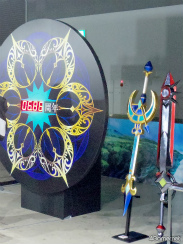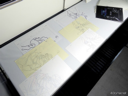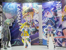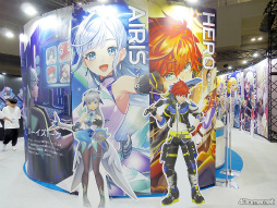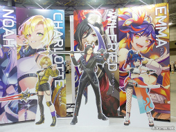 また,キャラクターたちのスタンディやゲームの着せ替えを使ってのフォトスポット,現状ここだけでしか見られないであろう(メディアも撮影禁止だった)コメント付き設定資料なども見られた。そこでのコメントに書かれていたが,赤髪のヒーローが持つポーチの中身は,版画の道具らしい。