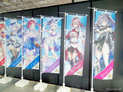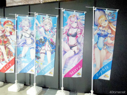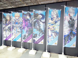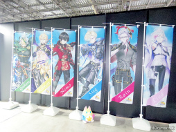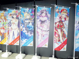 のぼり旗がずらりと並べられていた。好きなキャラののぼり旗を撮影したり,のぼり旗をバックに記念写真を撮影していたりと,楽しそうな姿が多く見られた。