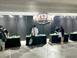 「眠らぬ島の伝説のアトラクション」が展開されていた。アトラクションのプレイ結果に応じて獲得できるメダルを使って,「CHALLENG ZONE」で抽選に参加すると,ステッカーやアクリルキーホルダー,アクリル置時計といった景品が獲得できた。