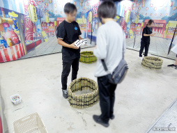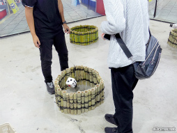 小さい斧を投げて,先にある窯の口かバケツに入れると成功というシンプルなアトラクション。窯かバケツに入った斧の数に応じてメダルが獲得できた(同じ場所に入った斧はカウントされない)。なお,投げる位置からかなり近い場所にあったバケツは小学生以下のプレイヤーのみ有効となっていた。