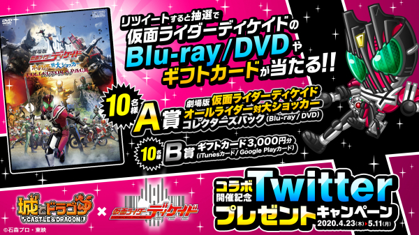 「城とドラゴン」,「仮面ライダーディケイド」コラボ記念キャンペーンが本日開始。Blu-rayやDVDなどが当たる