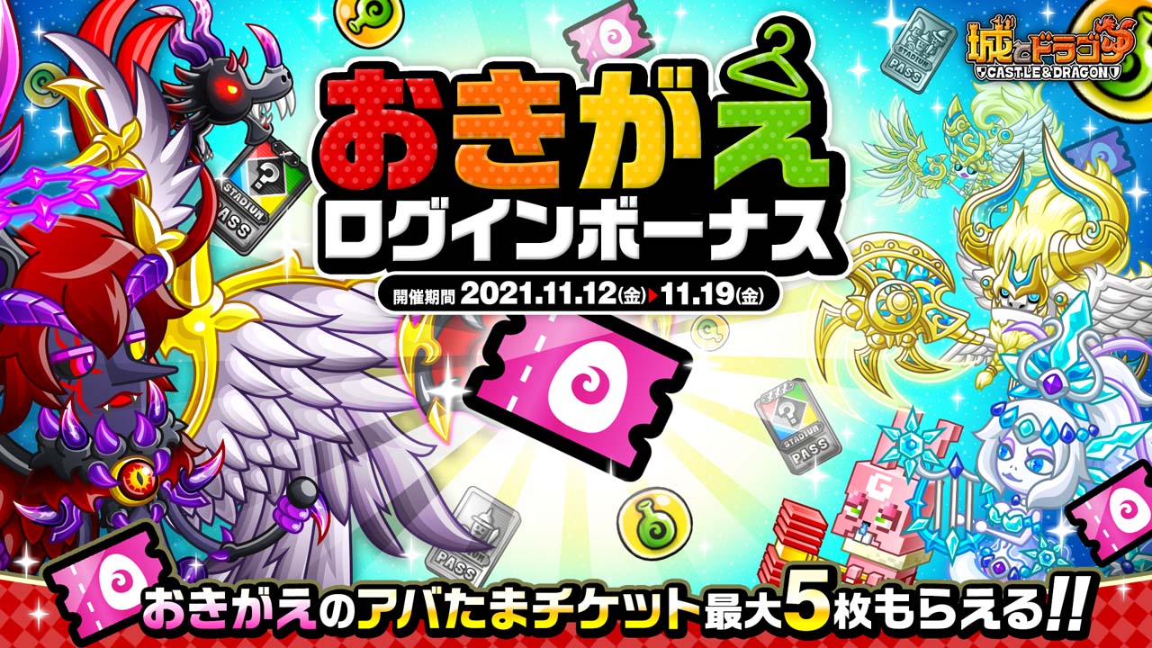 「城とドラゴン」,“おきがえログインボーナス”が開催。「アバたまチケット」の獲得チャンス