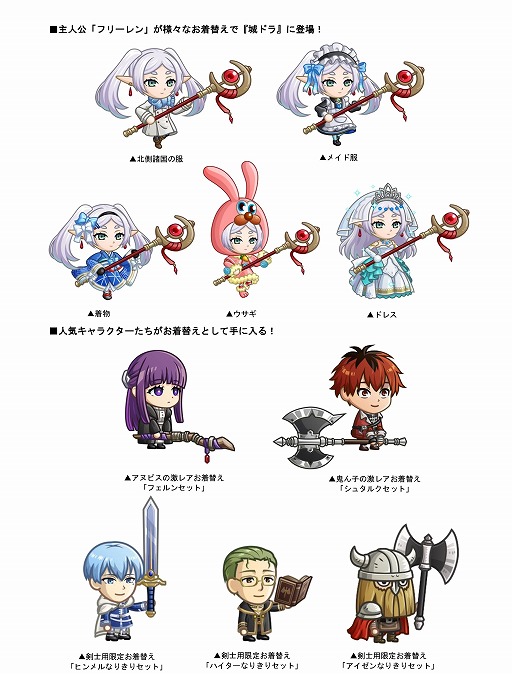 主人公「フリーレン」が様々なお着替えで『城ドラ』に登場!