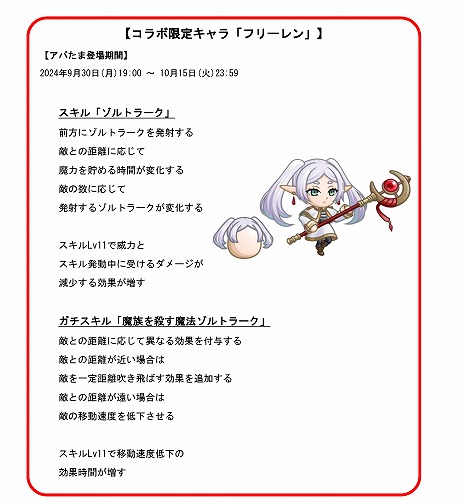 アニメ『葬送のフリーレン』とのコラボイベント開催を記念して、「コラボのアバたまチケット」最大10枚などがもらえる「ログインボーナス」を開催いたします。コラボのアバたまチケットを使ってコラボ限定キャラを手に入れましょう!