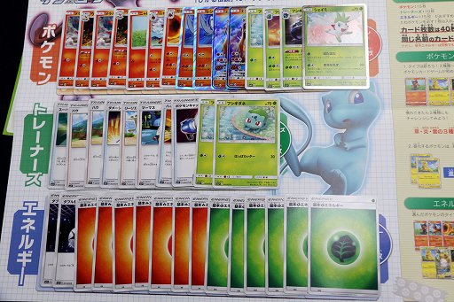 デッキ構築シートによれば,ポケモンカード×15枚,トレーナーカード×10枚,エネルギーカード×15枚で組むのがおすすめと書いてあるが,もちろん,この通りでなければいけないわけではない。