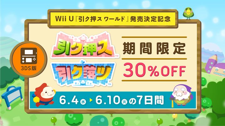 「引ク押ス ワールド」の配信日が6月19日に決定。配信を記念して3DS用ソフト「引ク押ス」「引ク落ツ」のセールが6月4日にスタート