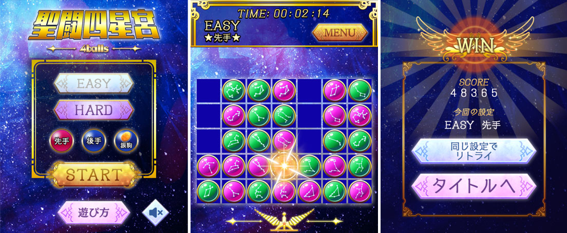「定番ゲーム集! パズル・将棋・囲碁forスゴ得」に四目並べゲーム「聖闘四星宮-4balls-」が追加