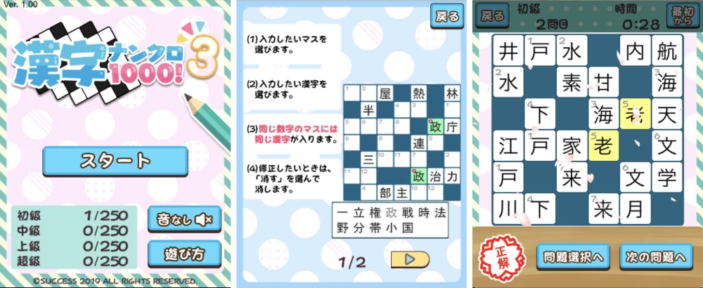 「定番ゲーム集! パズル・将棋・囲碁forスゴ得」に漢字ワードパズル「漢字ナンクロ1000!3」が追加