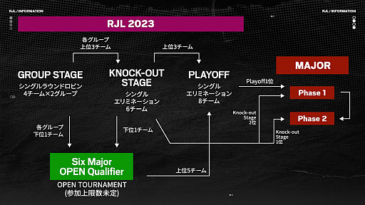 昨年、新加入したKAWASAKI SCARZが年間優勝を飾り、強力な新世代の台頭を印象付けた「RJL 2022」。今シーズン「RJL 2023」の上位チームは世界大会である「Six Major」に直接進出するという立て付けに変更され、計8チームが世界に向けて激しいしのぎを削ります。
