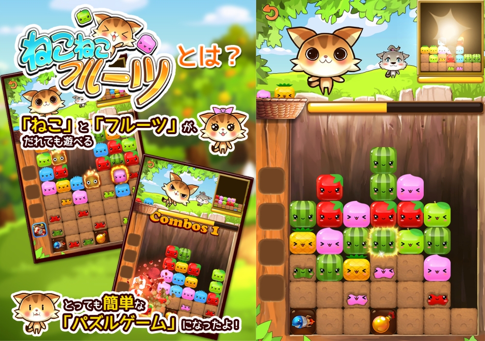 脳活パズルゲーム「ねこねこフルーツ♪」がGoogle Playで本日配信に
