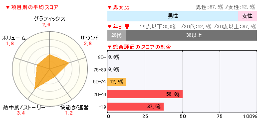 グラフィックス サウンド 快適さ/運営 熱中度/ストーリー ボリューム 2 5 1 2 2 -