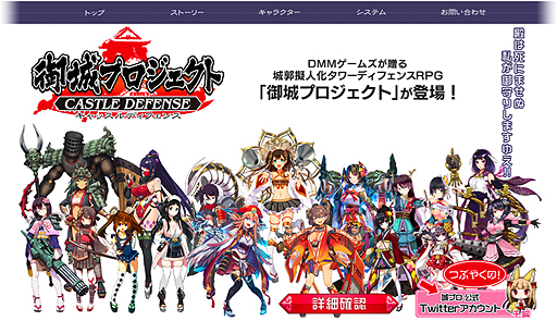 DMMゲームズの「御城プロジェクト〜CASTLE DEFENSE〜」が正式オープン。巨大美少女「城娘」を築城/育成して戦うタワーディフェンスゲーム