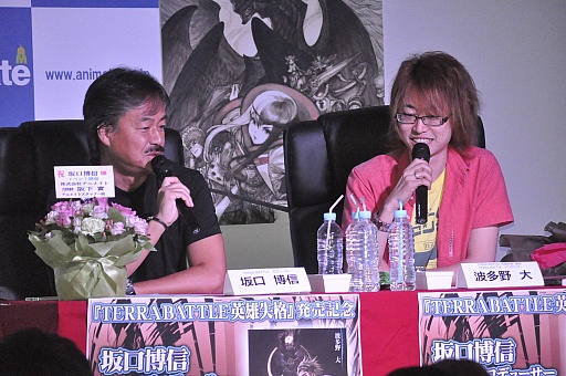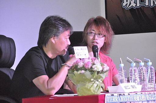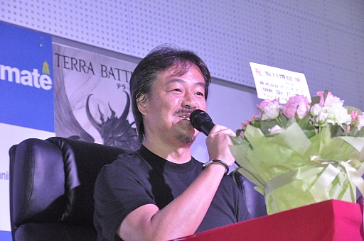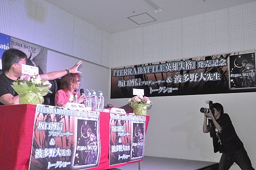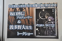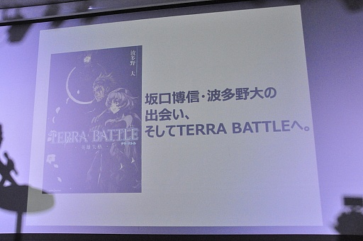 「英雄失格」の著者で,「TERRA BATTLE」のシナリオも手がける波多野 大氏と,「TERRA BATTLE」のプロデューサーである坂口博信氏が登場し,裏話などを披露した会場の模様をレポートしよう。