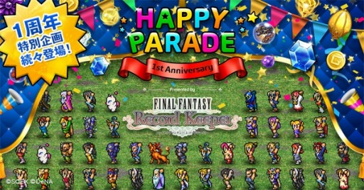 株式会社スクウェア・エニックス(本社:東京都新宿区、代表取締役社長:松田洋祐)と、株式会社ディー・エヌ・エー(本社:東京都渋谷区、代表取締役社長兼CEO:守安功)は、iOS/Android端末向けアプリ『ファイナルファンタジーレコードキーパー(以下、FFRK)』は、9月25日(金)に配信開始より1周年を迎えることを記念して、豪華ログインボーナス実施中と、本日より1周年記念のスペシャルイベントの開始をお知らせ致します。