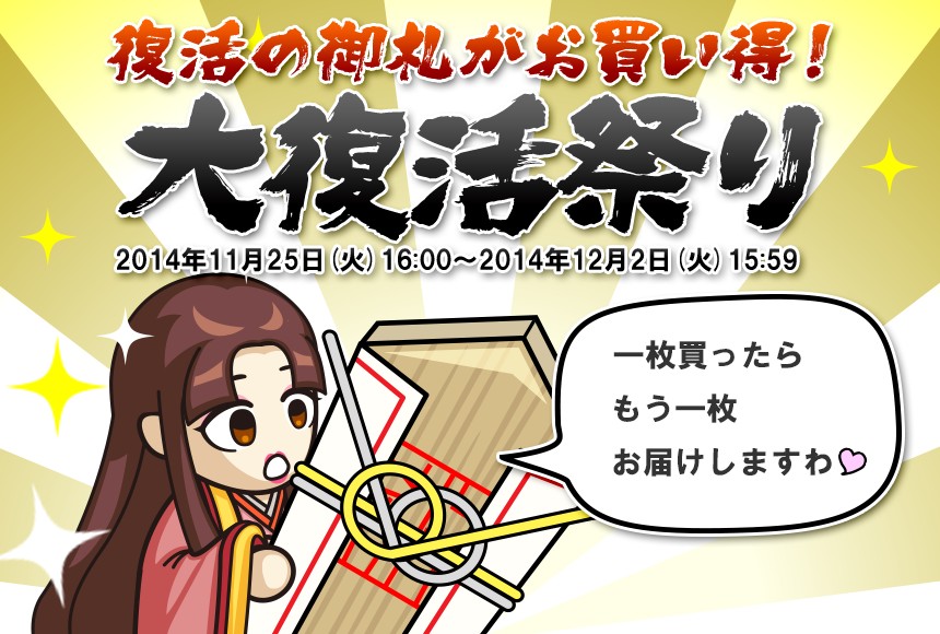 「戦国ディフェンス」期間限定で「復活の御札」を購入するともう1枚プレゼント