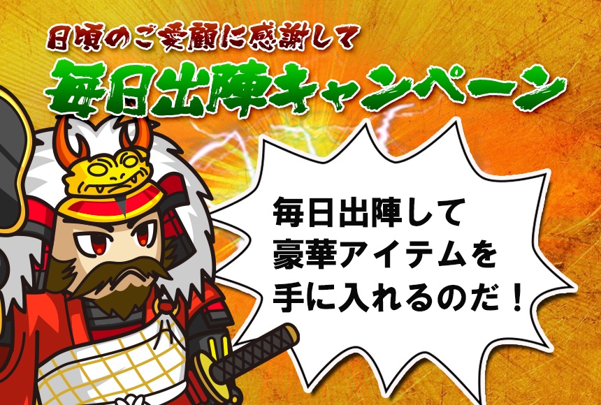 「戦国ディフェンス」アイテムがもらえる「毎日出陣キャンペーン第3弾」が開催に