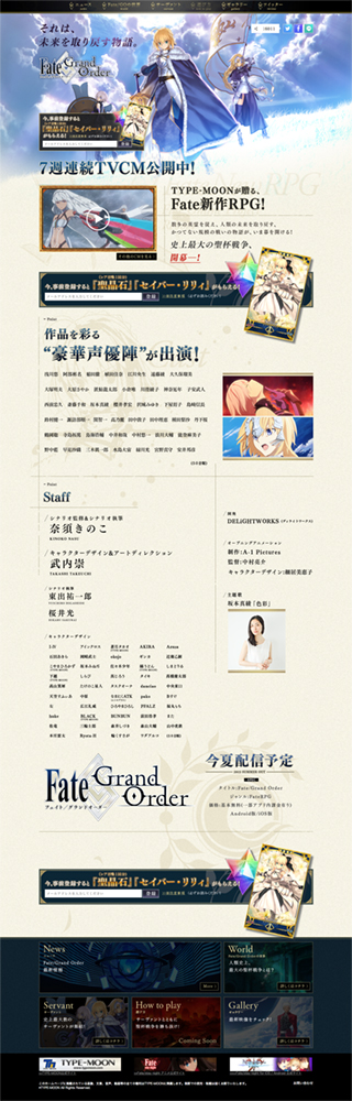 「Fate/Grand Order」公式サイトがグランドオープン。新たなサーヴァント「セイバー」(CV:能登麻美子)を公開