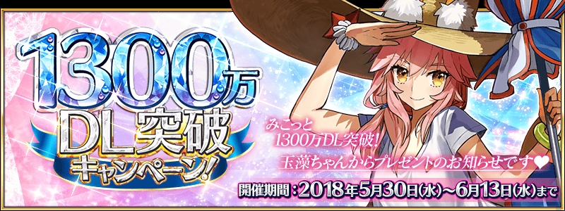 「Fate/Grand Order」が1300万DLを突破。ログインボーナスやハンティングクエスト第4弾などをラインナップした記念キャンペーンを開始
