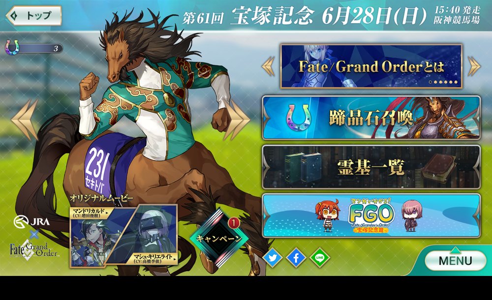 「Fate/Grand Order」と宝塚記念がコラボ。聖晶石召喚ならぬ「蹄晶石召喚」が特設サイトで公開