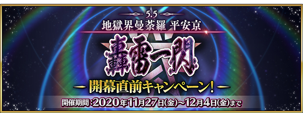 「FGO」第2部 第5.5章「地獄界曼荼羅 平安京 轟雷一閃」が12月上旬より開幕。直前キャンペーンがスタート