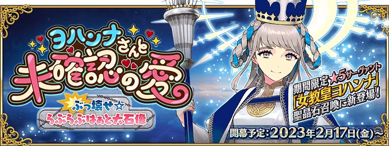 「Fate/Grand Order」の期間限定イベント「ヨハンナさんと未確認の愛 ぶっ壊せ☆らぶらぶはぁと大石像」が2月17日に開幕。好きなサーヴァントにチョコを渡してプレゼントをもらおう