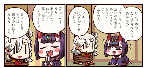 Fate/Grand Order」の第293 話を更新いたしました。とうとう酒呑童子に捕まってしまった所長。二人の間ではなにやら物騒な交渉が行われているようだが……?