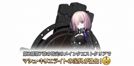 第 2 部 第 7 章「Lostbelt No.7 黄金樹海紀行 ナウイ・ミクトラン 惑星を統べるもの」の特定のメインクエストをクリアすると、マシュ・キリエライトの宝具が強化されます。