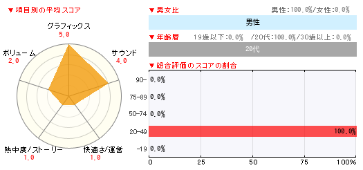 グラフィックス サウンド 快適さ/運営 熱中度/ストーリー ボリューム 5 4 1 1 2