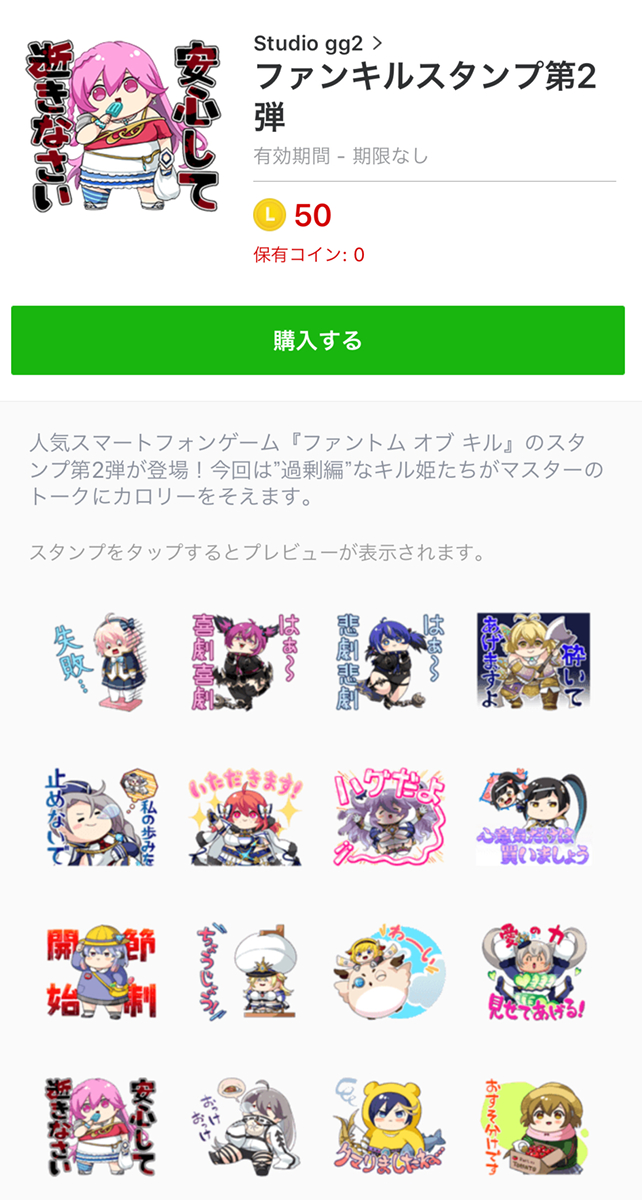 「ファントム オブ キル」,4周年記念のLINEスタンプ“ファンキルスタンプ vol.2”が発売