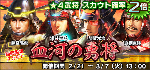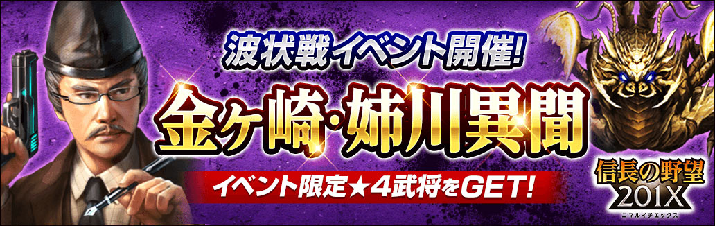 「信長の野望 201X」,☆4朝倉孝景が報酬の波状戦イベントを開催