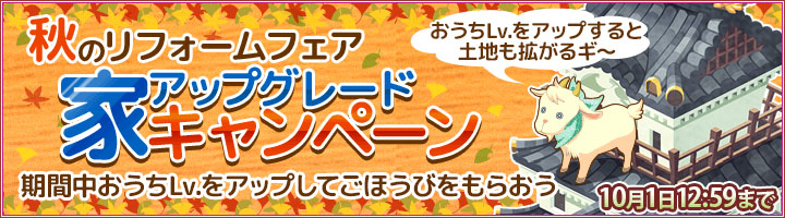 「畑っぴ」おうちLvを上げると特典をもらえるキャンペーンが10月1日まで開催