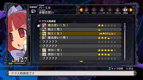 各職業・種族には、そのクラスの熟練具合を表す“熟練度”が存在する。
